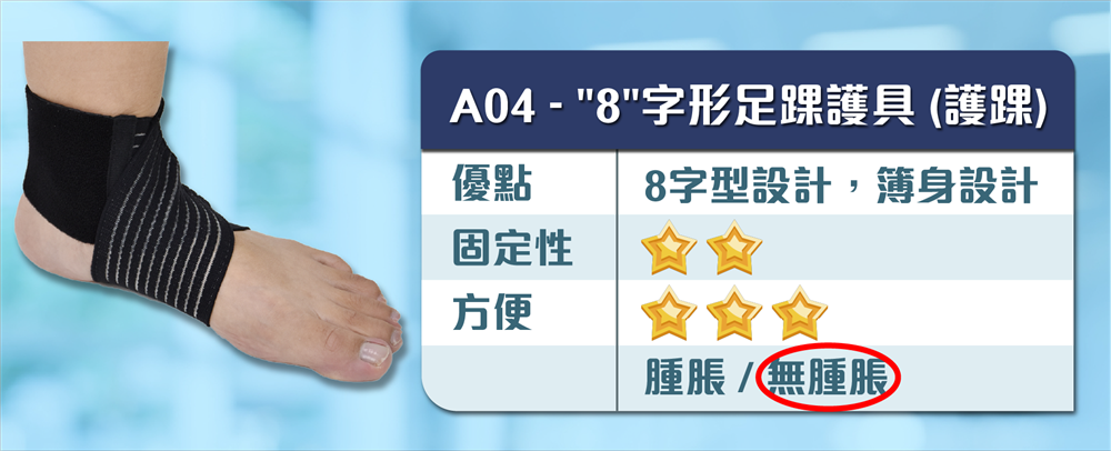 足踝扭傷最常見是足踝關節因意外內翻,導致距骨分離,從而導致不同程度的韌帶撕裂和腫痛。除了冰敷,佩戴護具固定踝關節也是一種有效的保守療法,使距骨復位,讓韌帶靠攏癒合,同時避免再次扭傷。市面上護踝種類繁多,選錯了不僅無法保護傷處,甚至可能影響血液循環或延遲康復。