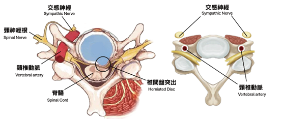 「頸源性疾病」便是指疾病是與頸部問題最為相關。頸是連接頭部與軀幹的橋樑,它包含脊椎、血管 和神經組織(Fig.1),對活動和生存至關重要,任何傷害這條橋樑或這條橋樑出現病患,對維持人體健康或身體機能有關鍵影響。